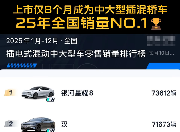 2025年的中大型插混轿车市场,被一个上市仅8个月的“新面孔”改写了格局。吉利银河星耀8,以累计73,612辆的全年销量,一举夺得了该细分市场的冠军。这个数字背后,不仅仅是一时一地的热销,更意味着市场与消费者对一款产品的深度认可。当我们聚焦于这款指导价11.58万元至15.58万元的车型时,会发现它的成功密码,远不止于第一眼的“好看”。