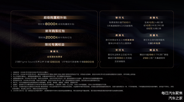 更值得注意的是,在2026年1月1日至2月15日24时截止的限时购车权益中,用户可以直接免费获得价值12800元的23扬声器音响和价值8800元的VIP电动行政座椅。这相当于将核心豪华配置变为标准体验,连同至高10万24期0息等金融政策,大幅降低了高品质体验的门槛。