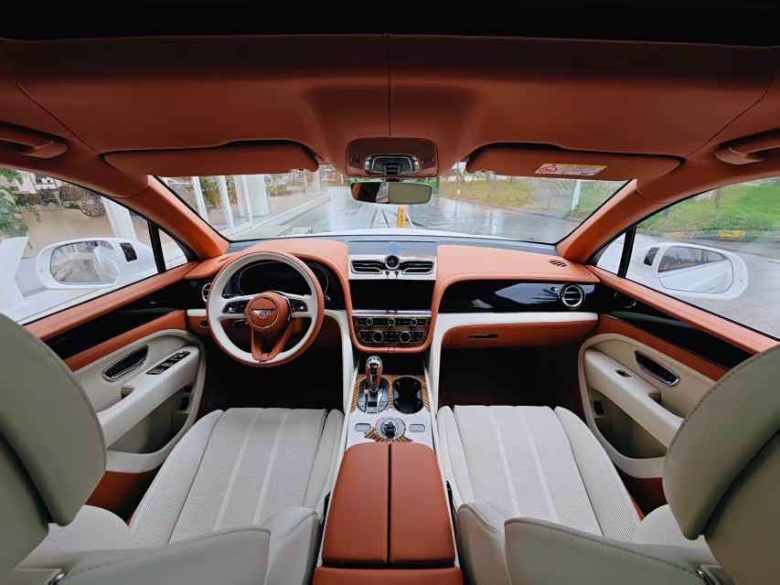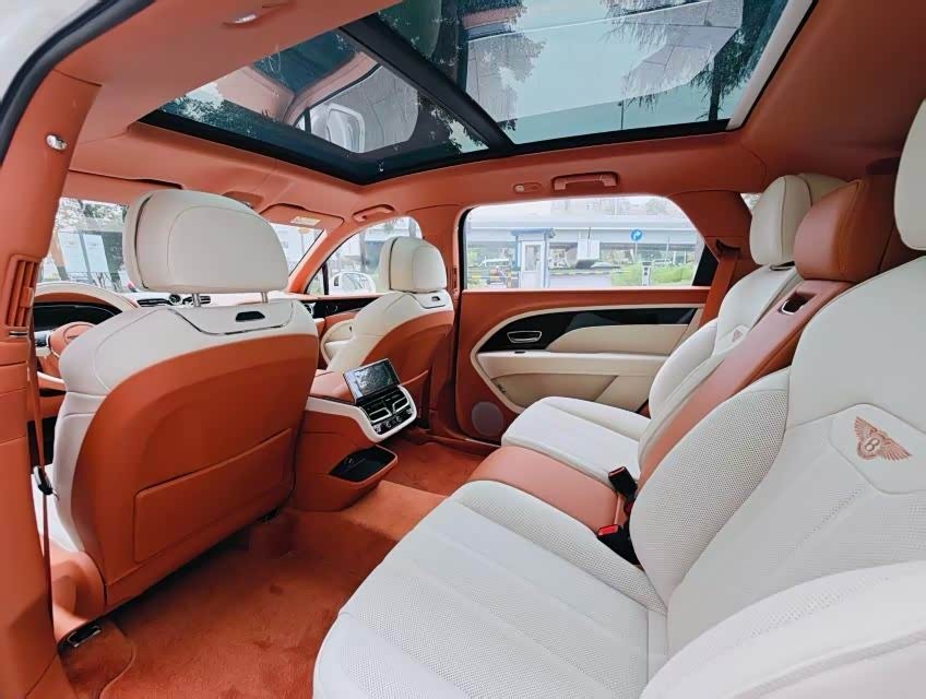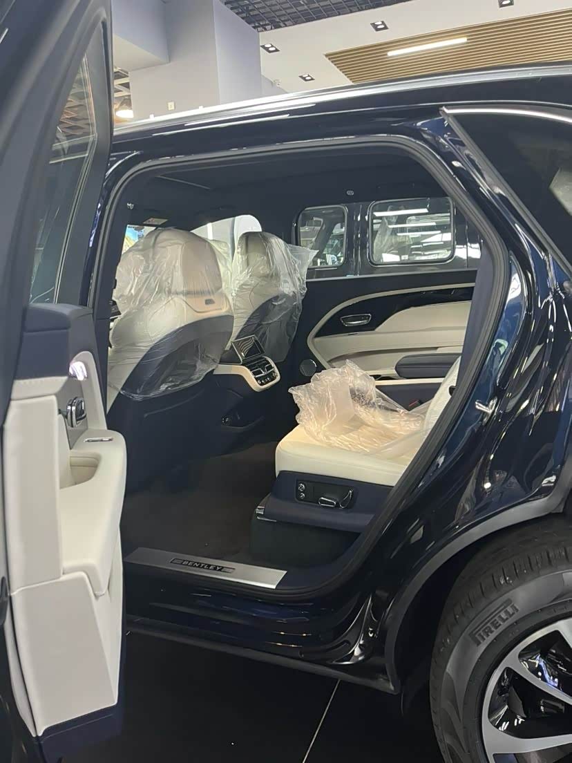 配置:【选配】 1. 反衬色宾利徽章刺绣 2. 4+1舒适座椅配置 3. 3辐式双色加热真皮镶边方向盘 4. 黑钢琴木面板 5. 后门电动关闭 6. 颜色配置 7. 21英寸五双辐铝合金黑色机械切割轮毂 8. 中控台细条纹木饰面-浅色人字形花纹(PCG MVE6) 9. 自正式轮毂中心盖。