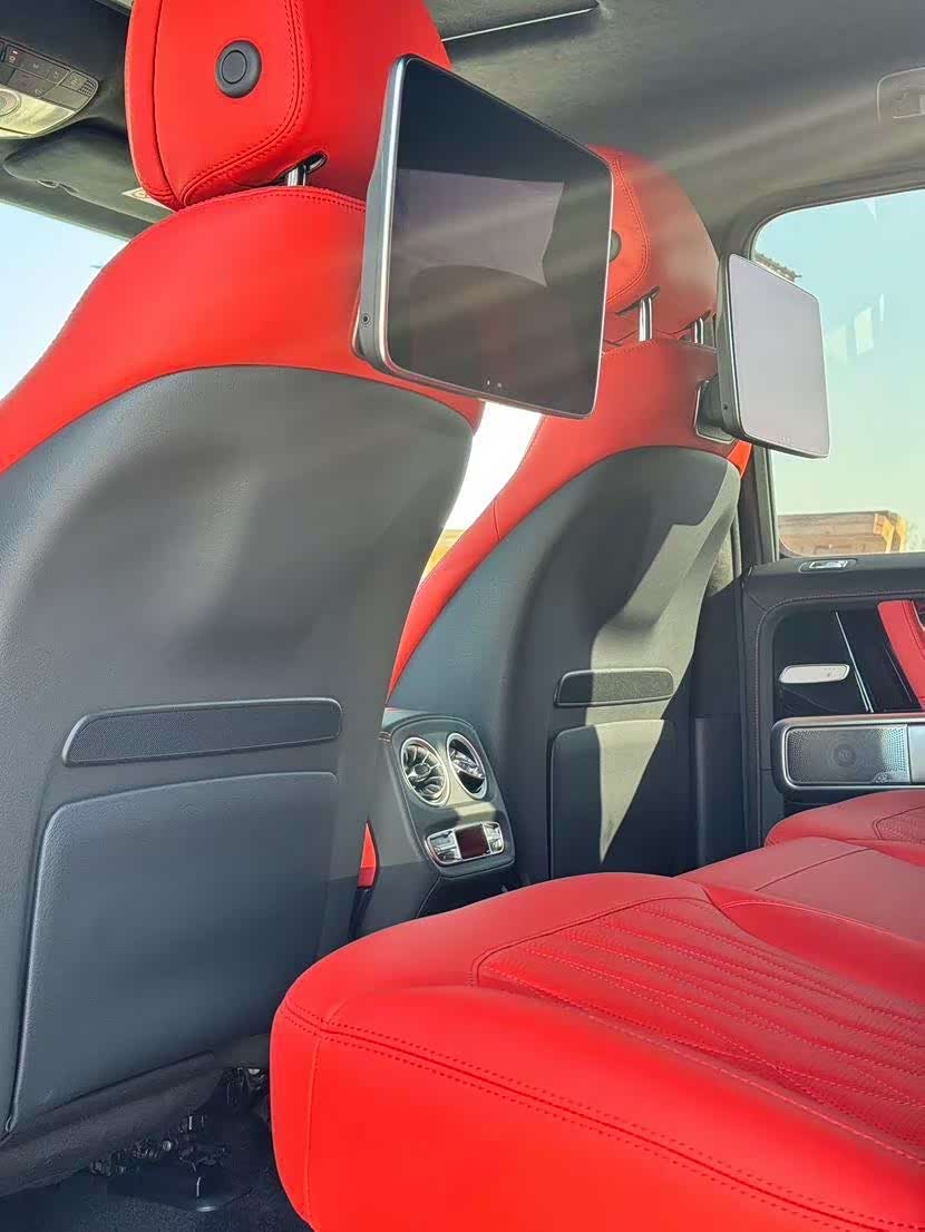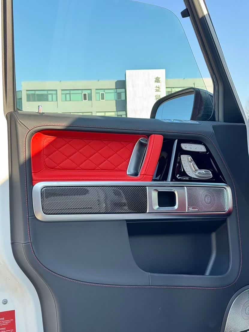 25款欧规G63 白/全红内饰 三碳满配 双暗夜包、三碳满配(碳纤维内饰+碳纤维方向盘+碳纤维备胎罩)、22轮、红卡钳、红色菱形格座椅、红色仪表台、后排娱乐、A22电磁悬架、黑色踏板+排气