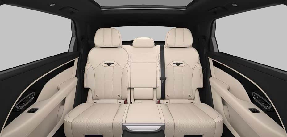 配置:【选配】 1. 反衬色宾利徽章刺绣 2. 4+1舒适座椅配置 3. 3辐式双色加热真皮镶边方向盘 4. 黑钢琴木面板 5. 后门电动关闭 6. 颜色配置 7. 21英寸五双辐铝合金黑色机械切割轮毂 8. 中控台细条纹木饰面-浅色人字形花纹(PCG MVE6) 9. 自正式轮毂中心盖。