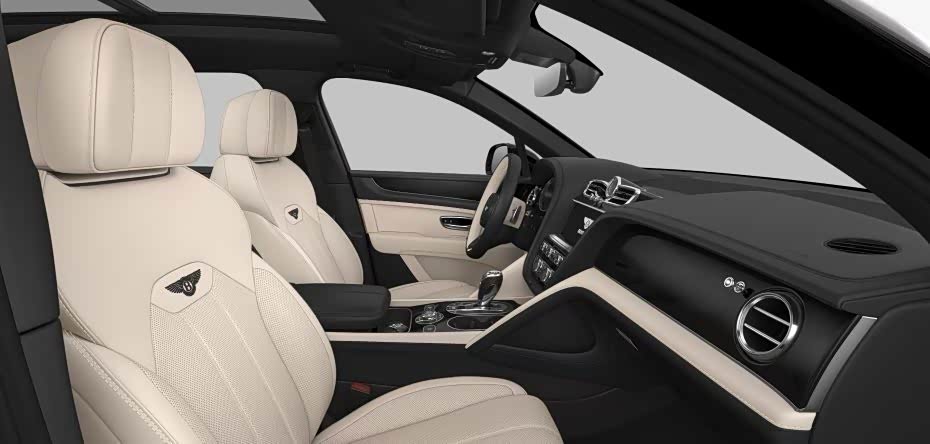 颜色:宝石黑/亚麻白/鲸鱼黑 选装配置: 1、颜色配置; 2、黑钢琴木; 3、3辐式双色加热真皮镶边方向盘; 4、宾利徽章座椅刺绣; 5、后门电动关闭功能; 6、5座舒适座椅配置; 7、21英寸五双辐铝合金喷漆轮毂