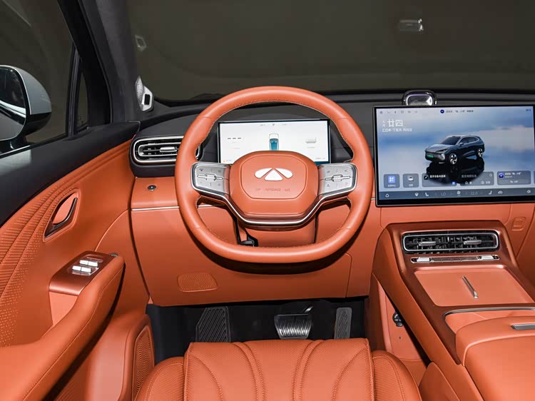 进入车内,风云T9L采用全液晶仪表与双辐式多功能方向盘组合,中控区域的核心为17.3英寸2.5K分辨率IMAX中控屏,该尺寸在同级别车型中属于偏大取向,主要服务于导航、影音以及辅助驾驶信息展示。中控台布局简化实体按键数量,通道区域设置双出风口与无线充电面板,横置双杯架更贴合日常使用习惯。整体内饰结构以横向延展为主,强调空间通透感,而非复杂装饰堆叠。