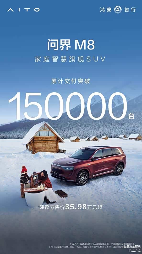 上市仅8个月累计交付量突破15万辆,问界M8的成长速度印证了其对家庭出行需求的精准回应,确立了其“家庭智慧旗舰SUV”的标杆地位。它不止是一台车,更是融合智慧与舒适的移动生活空间。
