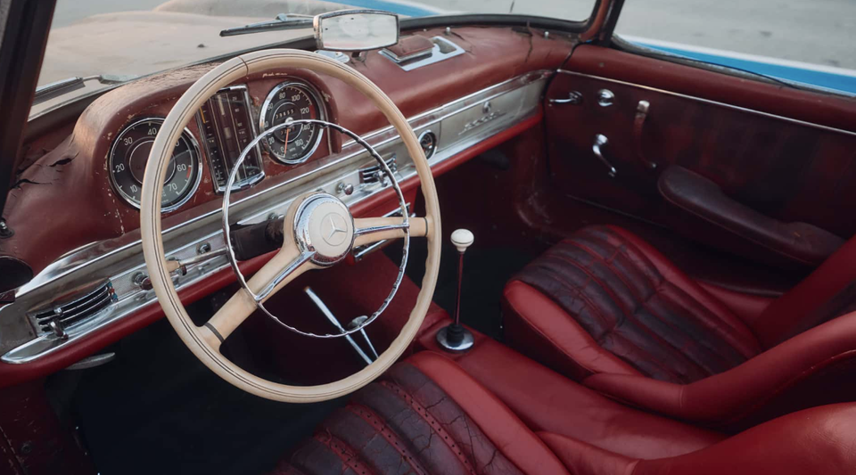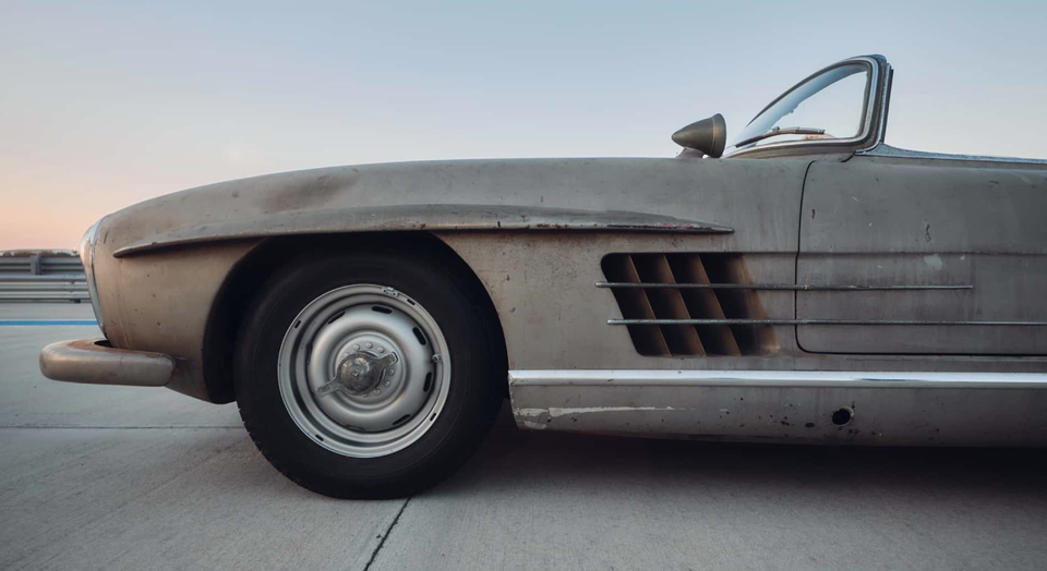 这辆1957年奔驰300SL敞篷版堪称“时空胶囊”——它以约792万元人民币的价格从废车场被救出,经奔驰原厂仅恢复机械功能,外观完整保留了数十年的锈迹与龟裂内饰。作者在赛道上亲驾这辆未经翻新的经典车:无助力方向盘手感沉重,3.0升直六发动机的215马力推动它跑出约64公里/小时的“极速”。每一处磨损的皮革与斑驳漆面都在诉说历史,而选择保留这份沧桑的原车主,无疑让这场驾驶成为穿越时光的奢侈体验。