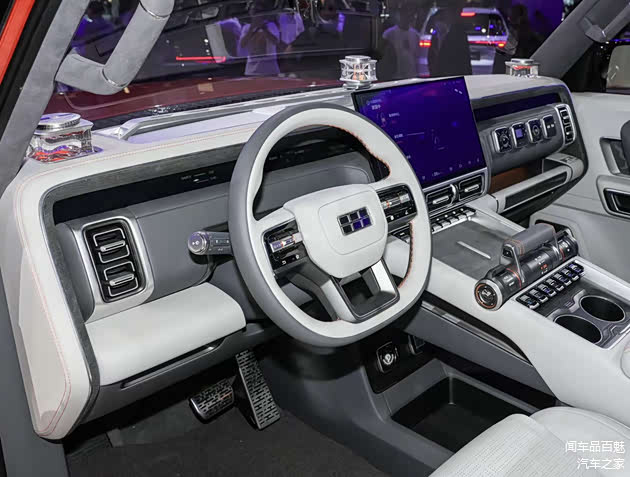 内饰部分,从其概念版车型的实拍中可以看出,其车内的设计布局同样显得层次鲜明,并保留了大量物理按键;搭配内嵌式长条形全液晶仪表、大尺寸悬浮式中控屏以及横推电子换挡机构等,科技性与硬派气息并存。此外,官方表示银河战舰将实现全场景AI智能化体验。