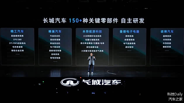 另外值得注意的是,长城汽车做到了150+种关键零部件自主研发,带来了坚实的创新底座。