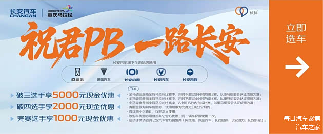 为致敬所有跑者的拼搏精神,深蓝汽车于赛事期间特别推出“奔跑者激励计划”。该计划以重庆马拉松组委会认证成绩为准,设立阶梯式购车礼遇:全马成绩破3选手可享5000元专属优惠,4小时内完赛可享2000元优惠,所有全马完赛者均可获得1000元礼遇,优惠有效期为完赛之日起三个月。这不仅是一份实实在在的福利,更是深蓝汽车与跑者之间,对“坚持、超越”这一共同信仰的深度呼应。