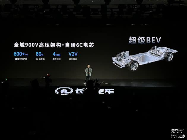 超级BEV:其实也就是纯电车型,将会配备全域900V高压架构、配合自研6C电芯,续航达到660km,峰值充电功率600kW以上,SOC10%-80% 充电仅需10.5min。