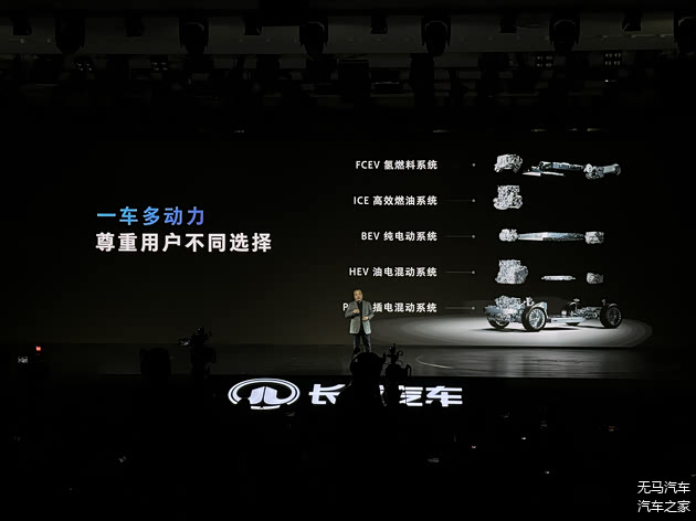 而说完了平台底层逻辑,再来看这个平台支持的技术能力,它是全球首个原生AI全动力汽车平台,没错,大家常见的燃油、混动(HEV/PHEV)、纯电它都支持,也支持大家不常见的氢能,也就是说,大家基本上想要体验什么样的动力形式,在这个平台都能找到相对应的车型。