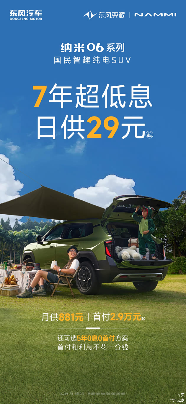 “国民智趣纯电SUV”纳米06系列,限时享3000元置换补贴、6800元五项终身免费品质保障,双金融方案限时同步,高价值智趣出行限时可得。