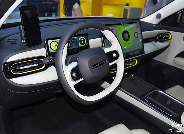 内饰部分,中控台造型简约立体,使用了悬浮式的仪表盘和中控屏,空调出风口为圆润的轮廓,两幅式方向盘造型很别致。