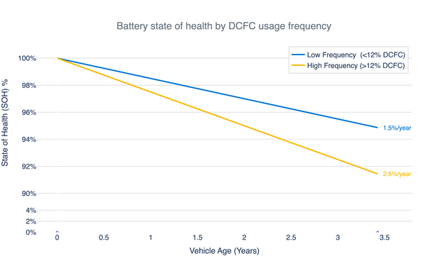 可能有朋友会疑惑,为何之前听到的衰减数据更夸张?研究也给出了解释:2024年报告中年均衰减率为1.8%,2025年数据略有上升,核心原因是样本量扩大,且快充使用比例提升——直流快充因易导致电池升温,会轻微加速衰减,但即便如此,2.3%的年均衰减率依然足够亮眼。