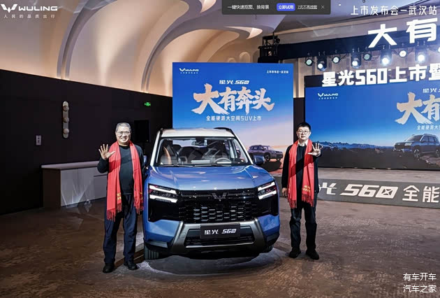 【有车开车资讯】2026年1月18日,「全能硬派大空间SUV」星光560上市武汉站暨新年用户派对在武汉燕尔阁正式举行。新车共推出四款车型配置:燃油1.5T 6MT舒适型、燃油1.5T CVT精英型、插混125km豪华型、纯电500km豪华型,置换补贴价为5.98万元-9.58万元,原上市指导价为6.28万元-9.88万元。