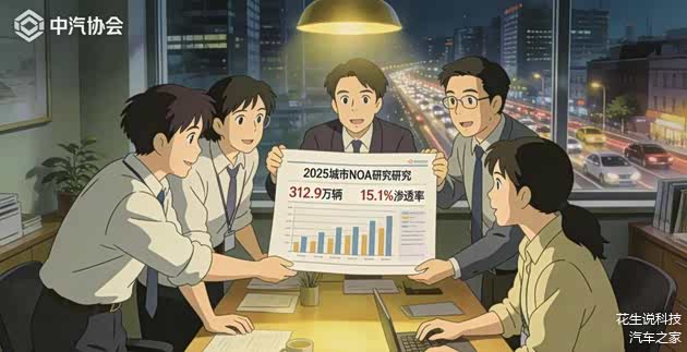 2026年初,中国汽车工业协会发布的《2025城市NOA汽车辅助驾驶研究报告》,用扎实的数据测出了中国智能驾驶产业的发展的含金量:2025年1月—11月,国内搭载城市NOA功能的乘用车累计销量达312.9万辆,渗透率飙升至15.1%,较2024年大幅提升5.6个百分点。起售价30万元以下的主流乘用车搭载城市NOA车型的销量占比超68.9%。