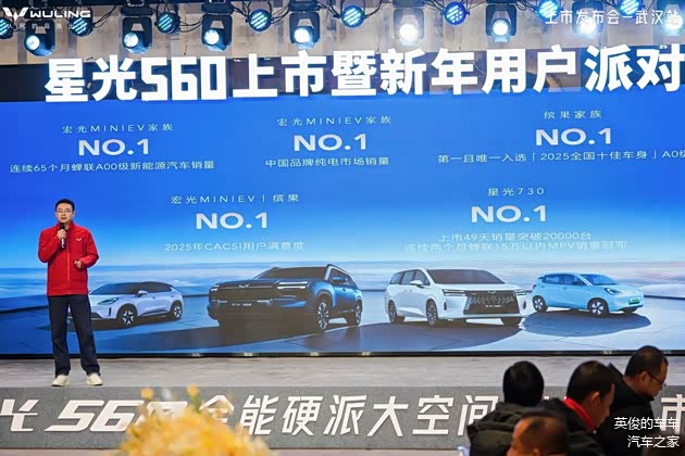 五菱银标人气口碑双丰收,热销爆款接棒登场——宏光MINIEV家族连续65个月蝉联A00级新能源汽车销量第一,累计销量突破185万辆,成为中国品牌纯电市场销量最高的单一车型;缤果家族销量口碑双丰收,缤果S荣膺“2025全国十佳车身”,且是史上唯一入选的A0级车型;星光家族成为越来越多家庭的品质之选,「全能舒享大7座」星光730上市49天销量突破2万辆,连续两个月蝉联15万内MPV销量冠军。