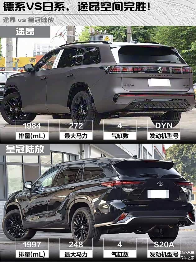 🆚皇冠陆放2.0T四驱劲耀版用8AT变速箱,248马力稍弱但胜在平顺。5015mm车长更灵活,但第三排坐垫偏短。最绝的是油耗,WLTC8.75L比途昂省0.4L,丰田祖传省油技能点满~