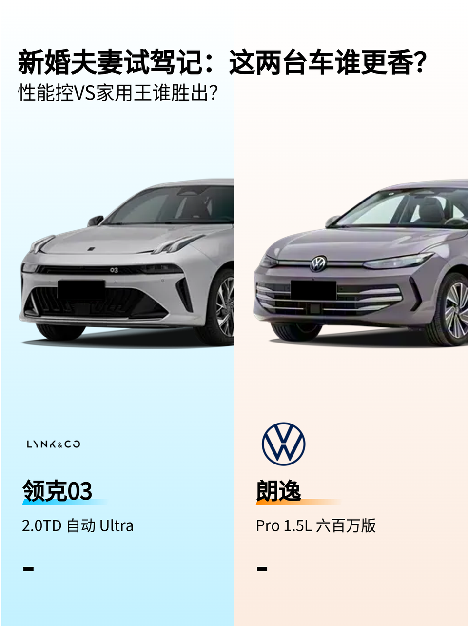 A:要激情选领克03,红绿灯起步稳赢;要过日子选朗逸,省下的油钱够买半年奶茶!