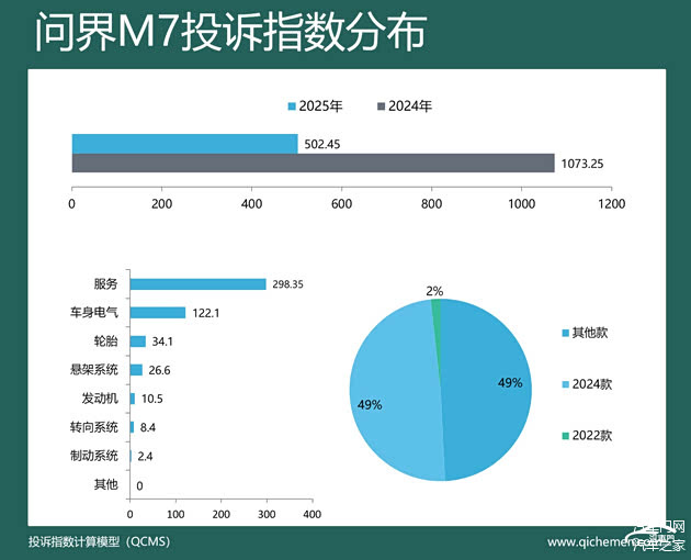 汽车质量投诉点评:过去的一年,问界M7的投诉指数同比下滑了53%。从投诉反馈来看,经销商不按约交车且不退订金成为车主吐槽的主要原因。有车主投诉称,自己支付5000元订金后,官方标注交付时间为6-8周,但超过承诺周期后,车辆仍未交付且没有明确排产时间。与4S店多次沟通后,被告知“无退款通道”,仅可享受“10周超期交付现金补贴”。与此同时,驾驶辅助故障也遭到车主投诉,主要集中在2024款车型。