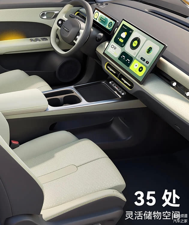 新能源化之后,尺寸比当年更大,4195*1811*1569mm,轴距2700mm,跟星愿接近,电机有58kW和90kW两种。设计是QQ3的最大卖点,有大量圆形类似胶囊的元素,还有很多撞色设计,就车机界面也是大色块+精致路线,原创度还是蛮高的。如今90后都35+了,QQ3会不会是他们拿来代步用的增购之选?
