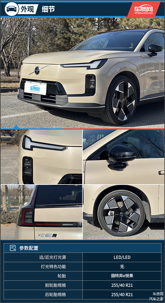 外观方面,评测车延续斯堪的纳维亚式简约豪华风格,封闭式前脸契合其新能源身份,下方配备主动进气格栅,可根据工况自动调节开度,以优化座舱气候与能效表现。矩阵式LED大灯沿用标志性的“雷神之锤”元素,分体式布局让视觉层次更加立体。