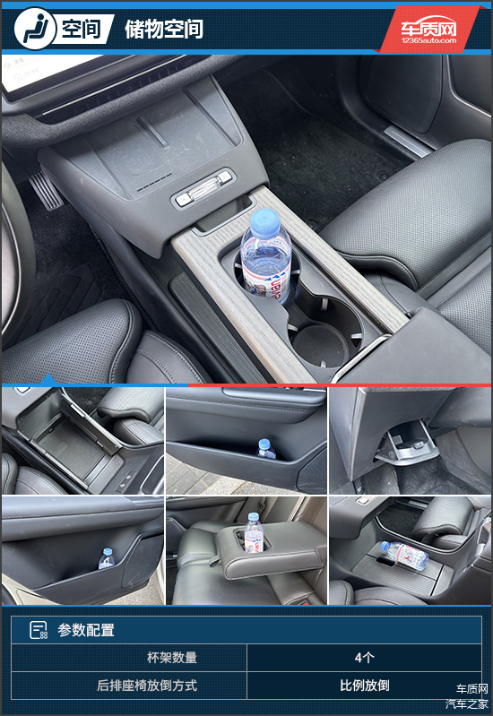 评测车内部风格简约而精致,仪表台采用皮/织物材质混搭包覆,悬空式设计营造出不错的立体感,内嵌式氛围灯则进一步增强了夜间座舱的沉浸感。中控屏下方配备50W手机无线充电板,其后方保留了少量实体按键,造型精致且便于日常操作。车内香氛系统安置在手套箱内,可通过中控屏选择香型并调节浓度,营造专属的驾乘氛围。细节方面,前排滑动中控台收起后可形成更大的下沉空间,方便取放物品,但也因此取消了中央扶手箱,正所谓有得必有失。