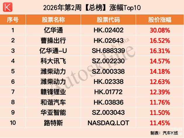 一边是亿华通港股凭借超过30%的周度涨幅傲视群雄,新能源、智能化/出行板块多点开花;另一边则是乘用车整车板块集体低迷,多数主流上市车企股价收跌。