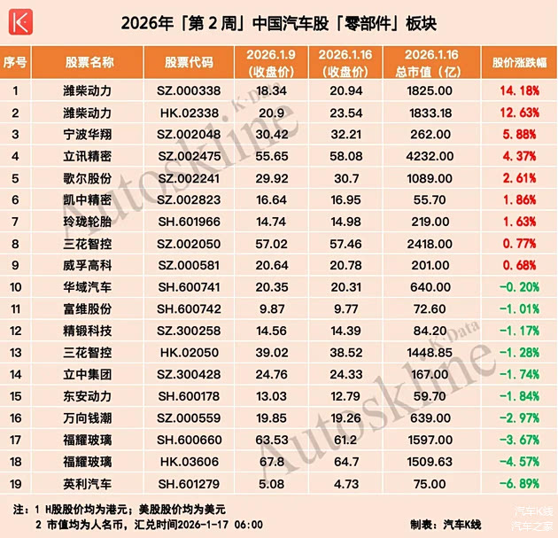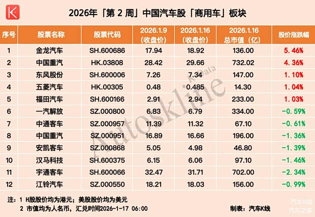 新年第2周,中国汽车业上市公司整体表现虽不及前一周那样火热,但也可称之为稳健。