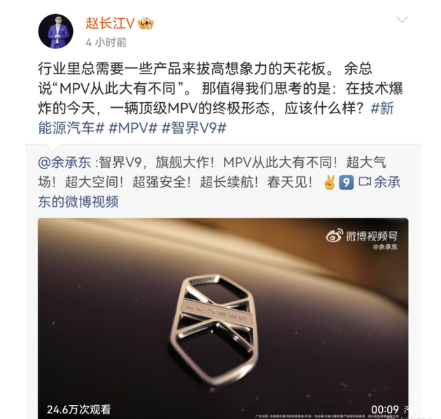 因为这两天朋友圈里讨论的一个重要话题,是原本在腾势把MPV卖火了的赵长江,这两天正式官宣入职了智界。