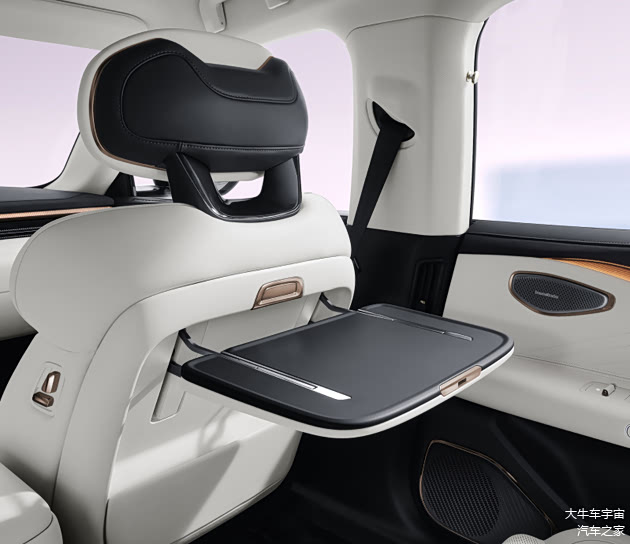 标配的全景天幕虽然观感好,但没给遮阳帘,夏天可能还是会有烘烤感。后排标配了一个小桌板,也标配了隐私玻璃,座椅靠背标配了电动调节,还标配了老板键,这台车真可以说是“标配王”。