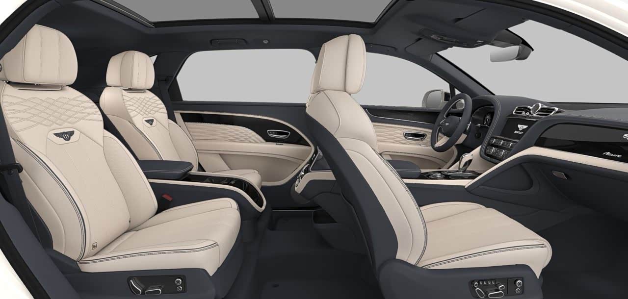 配置:外漆颜色 Paints:木兰花白 主皮颜色 Main hide:亚麻白 副皮颜色 Secondary hide:纽马克特褐 亚麻白钢琴木饰面板及门腰-by Mulliner、 直纹哑光胡桃木内饰方案 Colour spilt: EWB 座椅刺绣 Emblem stitching: 反衬色方向盘 Steering wheel: 3辐式双色加热真皮镶边方向盘轮毂 Wheels: 22 英寸十辐铝合金喷漆轮毂。