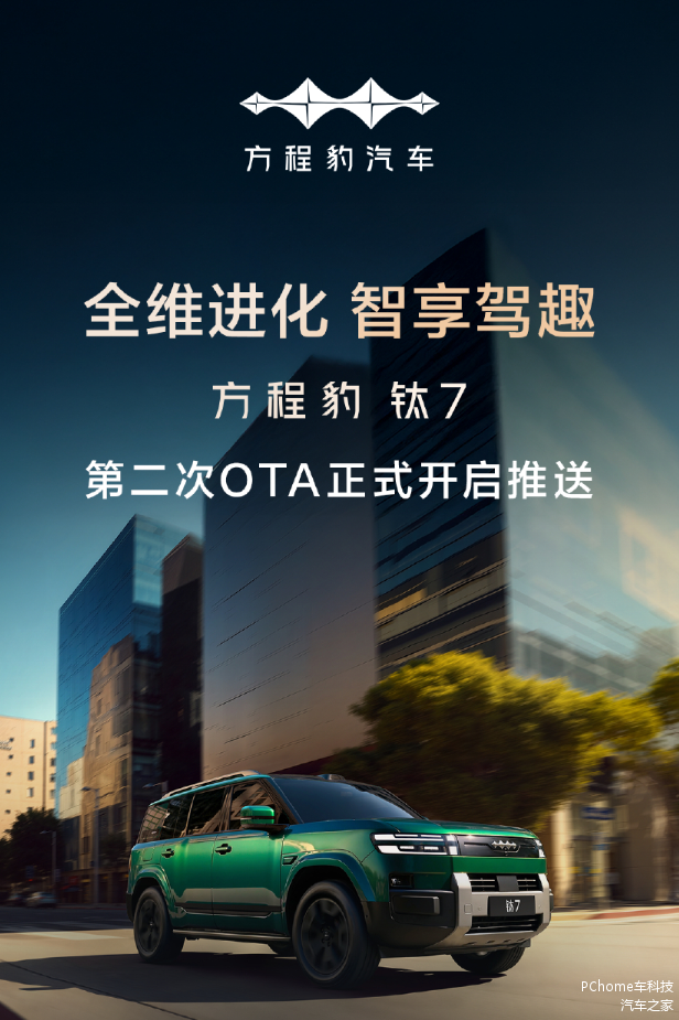 2026年1月19日,比亚迪方程豹 钛7汽车第二次OTA正式开启推送,涵盖14项新增功能与11项体验优化,覆盖智能座舱、智驾体验及用车安全等多个维度。