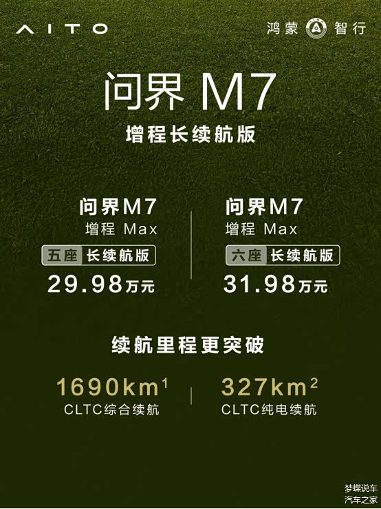 新品上市,问界M7增程长续航版主打续航提升