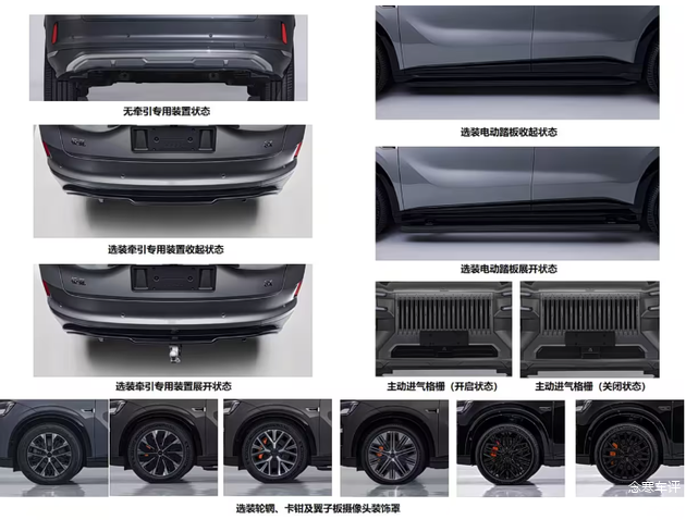 好在工信部申报图里还露出了个“黑武士”版本,把那些亮瞎眼的镀铬条全给黑化了,轮毂、车窗框全是黑的,配上橙色的大卡钳,这才是极氪该有的味道嘛。