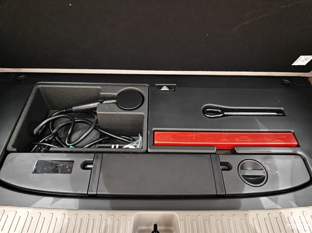 当然,后备箱地板下没什么空间了,因为留了位置放“花洒”——最近大家提及LS9,都会开玩笑说起“去洗澡”的事儿——这不是什么坏事,至少有明确的记忆点可以被人记住,况且我那天去完海边,发现这玩意真有实际需求——你不用再和其他人争抢沙滩旁拥挤湿滑又可能要收费的洗脚区了。