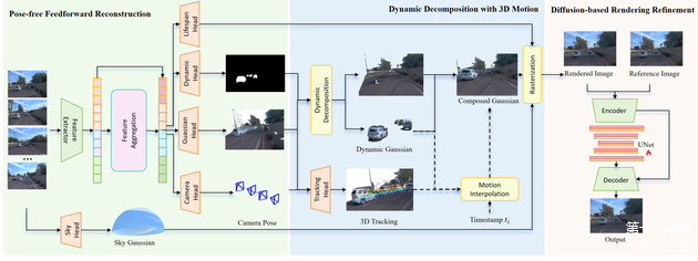 这意味着,智驾每天产生的数百万小时路测视频,几乎可以实时地转化为可交互的4D仿真教材!更具意义的是,参与论文研发的团队还攻克了“Unposed(无位姿)”难题,让系统能直接处理存在标定误差的原始数据。这份成果不仅为“闭环仿真”插上了翅膀,更标志着智驾仿真从“手工作坊式”的精雕细琢,正式跨入了“工业级流水线”的瞬间生成时代。