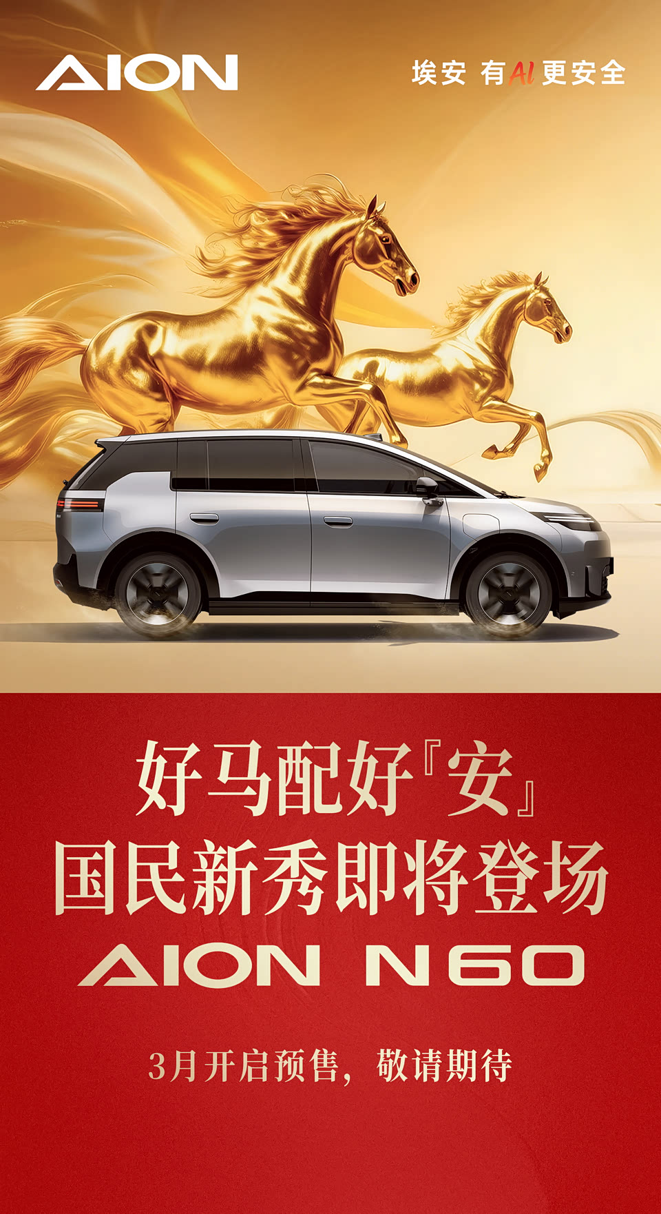 日前,埃安N60迎来首发亮相,新车计划3月份开启预售,定位紧凑型SUV,拥有全新的贯穿式前后灯带设计和激光雷达配置,CLTC纯电续航最长可达630km。官方资料显示,埃安N60是一台「跨界新物种」,融合了SUV的通过性、MPV的空间感和两厢车的灵动感,最终呈现出一个独特而和谐的整体。外观方面,新车采用品牌全新设计语言,前脸配备星环式贯穿灯带,中央镶嵌可发光的AION英文车标,看起来既前卫又时尚。车身侧面,A柱倾角非常明显,让前机盖与车顶过渡得非常自然,同时配备了A柱三角窗来降低视野盲区。细节方面,新车还配备黑色的车窗线条、黑色的外后视镜和黑色的D柱,带来悬浮式车顶的视觉效果。尺寸方面,新车长4615mm,高1673mm,轴距为2775mm,四轮四角的设计,配合长轴距矮车身的比例,带来了更强的运动气息。另外,新车还提供低风阻轮毂和双五星造型轮毂可选,轮毂尺寸达到18英寸。车尾设计简洁,尾灯与头灯呼应,后包围配备两块银色护板,增加了跨界属性。新车内饰暂未公布,但会采用五座布局,并标配零重力按摩座椅,部分车型支持城市和高速领航辅助驾驶功能。动力方面,新车提供100千瓦和165千瓦两种电机,CLTC续航里程分别为410km、510km、630km。