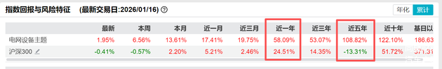 截至1月16日,该指数近1年上涨58.09%,近5年上涨超108.82%,远超同期沪深300指数涨幅。