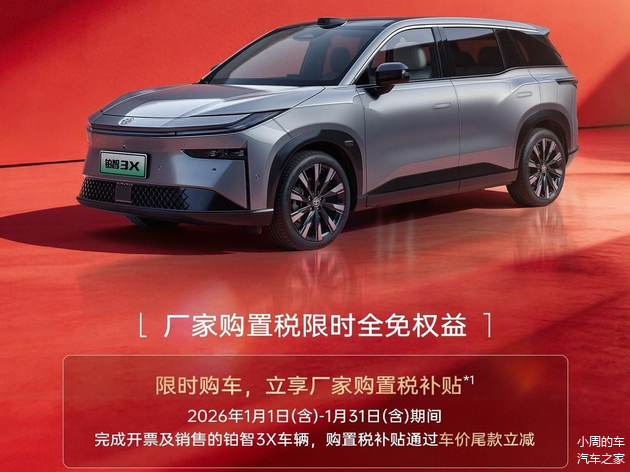 广汽丰田旗下的铂智3X在1月底之前兜底购置税;