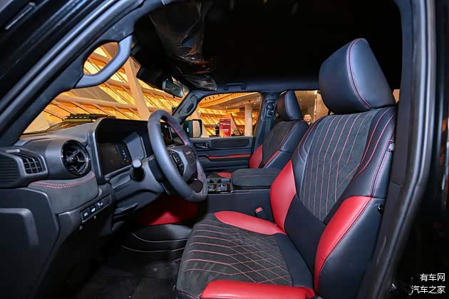 标配 128 升大油箱,续航超 1100km,搭配 5 毫米加厚底护板,无惧极端路况冲击;升级高强度铝合金牛栏杠、高强度碳素结构钢冲沙杠及一体化绞盘支架。配备 A 柱魔术支架、可集成各种灯光配置,灯光控制采用飞机座舱的按键设计,操作也更加方便。车辆还搭配了承重强、耐腐蚀的车顶平台,可以搭载工具箱、树枝分离器、侧帐等多种配件。外挂一体收纳工具箱,可收纳各类零碎物品;专利设计的侧爬梯,可以拉伸到地,还可以拆卸,当临时的梯子,堪称攀爬神器。同时车辆还搭载 MTS 全地形系统,协同四驱与后桥差速锁,复杂路况稳如坦途,内饰采用意式 Nappa 真皮与欧蒂兰麂皮绒翻毛材质,采用避线冲孔工艺,个性定制,让越野旅途更显格调。