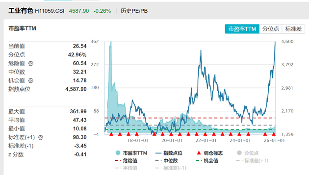 截至1月19日,中证工业有色金属主题指数PE-TTM约为26.54倍,处于近十年42.96%分位,相较其他的高科技赛道,安全边际较为充足。