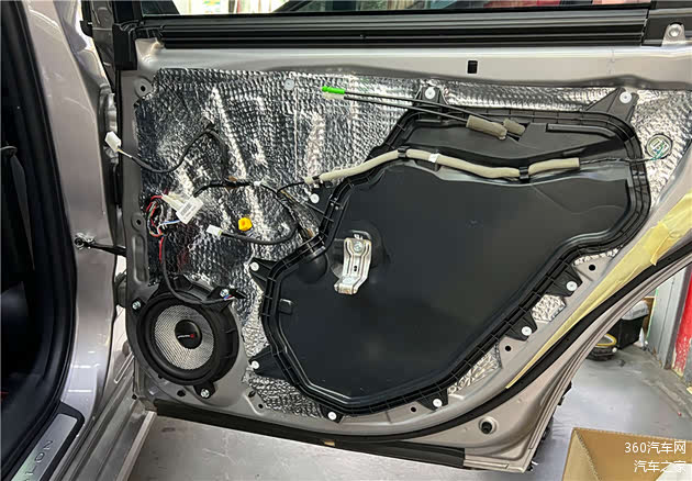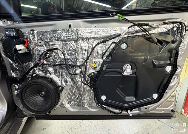 车门原位安装的是亚洲龙专车专用的8寸中低音喇叭,不仅喇叭安装外框与原车一模一样,还有专车专用的对接插口,完全不用破坏原车线路,真正做到无损升级。同时为了更好的低频,车门做了专业的隔音处理。