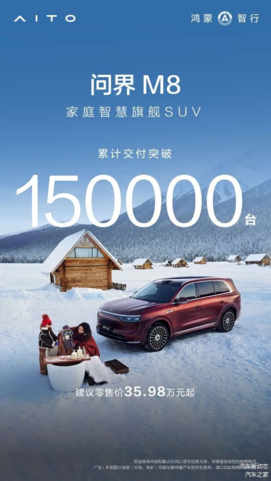 上市仅8个月累计交付突破15万辆,问界M8的爆发式增长,源于对家庭出行需求的精准洞察与全维满足。它融合智慧科技、舒适空间与全维安全的移动生活空间,早已成为超15万家庭的共同选择,确立了“家庭智慧旗舰SUV”的标杆地位。