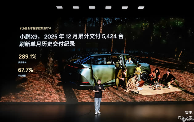 1月19日,小鹏汽车官方发布 小鹏X9超级增程首个用户画像报告。2025年12月,小鹏X9超级增程交付量达5424台,同比增长289.1%、环比增长67.7%,刷新单月交付纪录,同时斩获12月高端MPV个人用户交付量榜首、印尼纯电MPV月度销量冠军及2025年下半年香港MPV销量冠军三项荣誉。