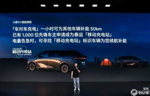 此外,小鹏X9超级增程已启动“移动充电站”公益合伙人计划,目前已有1000名先锋车主加入,可通过V2V车对车放电功能,在春运期间为电量告急车辆提供应急补能。