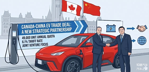 就在加拿大总理马克·卡尼在访华第三天宣布,不再对进口中国电动汽车加征100%的额外关税,同意每年允许最多4.9万辆中国电动汽车,以最优惠的国别关税税率6.1%进入加拿大市场,和之前100%大的额外关税相比,云泥之别。