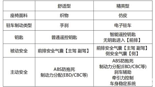 总的来说,燃油车的精英型就是舒适型的升级版,增加了很多舒适型没有的配置,两款车最大的区别就是舒适型是手动挡,精英型是自动挡。
