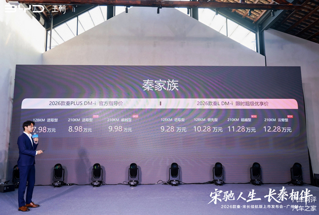 近日,比亚迪王朝网2026款秦PLUS DM-i、秦L DM-i及宋Pro DM-i长续航版正式登陆广州,携技术升级与颠覆性政策给本地车市注入强心剂。作为深耕家庭出行市场的核心矩阵,这三款新车不仅延续秦、宋家族的市场积淀,更以精准定价和硬核产品力,重新定义插混车型的价值底线。