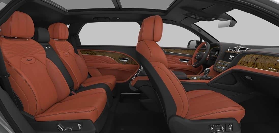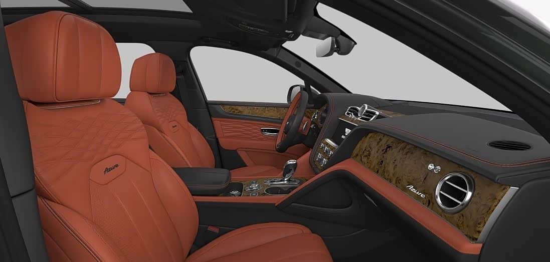 颜色:宝石黑/纽马克特褐/鲸鱼黑/天然哑光深胡桃木EWB Naim顶级音响 颜色配置 黑钢琴木 22寸十幅铝合金喷漆轮毂 双色方向盘 反衬缝线及滚边 4+1座椅 宾利标反衬刺绣 羊毛地毯。