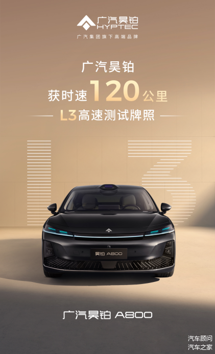 广汽 昊铂A800获得“L3级特定场景自动驾驶道路测试”牌照